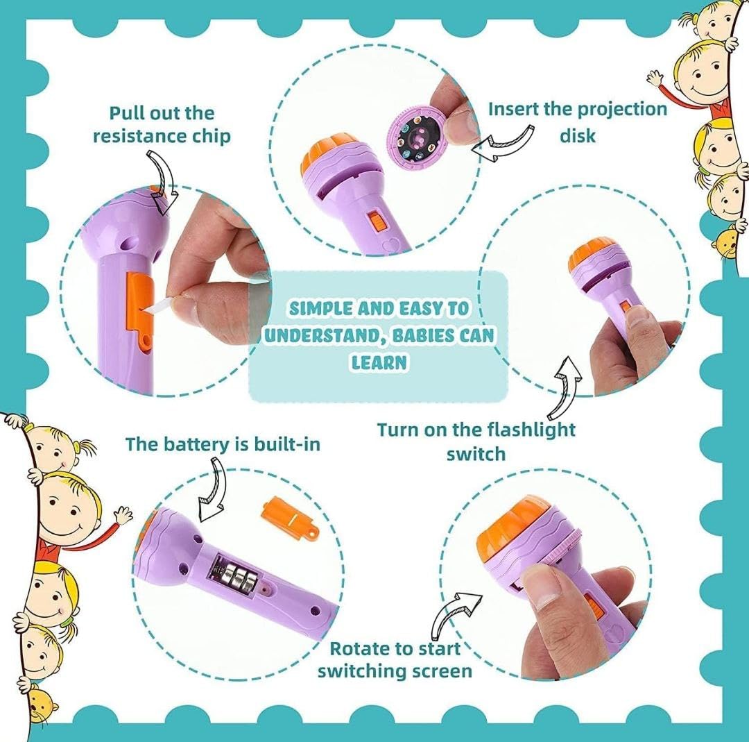 Projector Torch, Animal Slide Show Flashlight Toy, 6 Slides